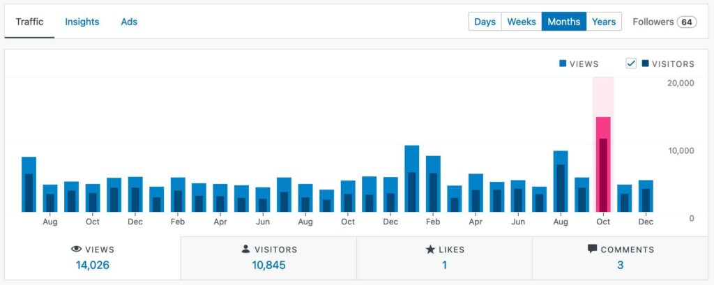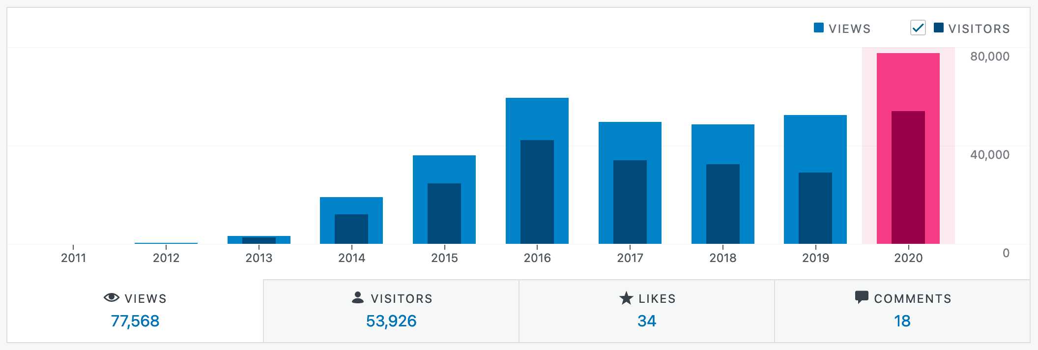Before 2020, our best year was 2016 when the site attracted 59,494 post views.
