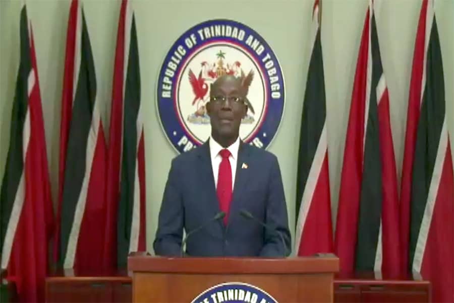 Above: Prime Minister Dr Keith Rowley addresses the nation on September 11, 2016.