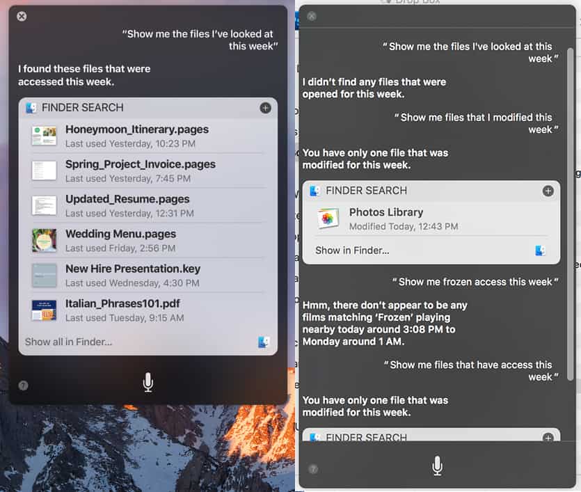 I could open an app, but not a new document in any software, even Apple standard software like Pages and Mail. Finder searches failed more often than they succeeded and Siri, overall, seems to need more hooks into what the OS can actually do when driven by a mouse or keyboard. A guide for framing requests for action would also be useful.