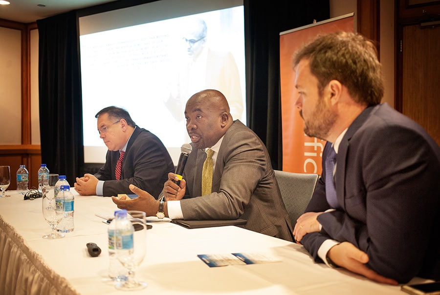 Above: The Public Sector panel on Digital Government at Microsoft’s M4, from left, Josemaria Valdepenas, Microsoft Digital Transformation Architect, Minister of Information Milford Nicholas and Marlon Fetzner. Photo by Mark Lyndersay.