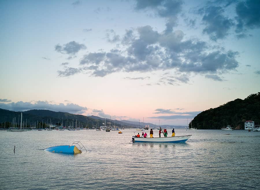 Above: The good ship Jouvert, blue at lower left, photographed at Hart’s Cut, Chaguaramas last week at dusk with the Mate 9. Photograph by Mark Lyndersay.