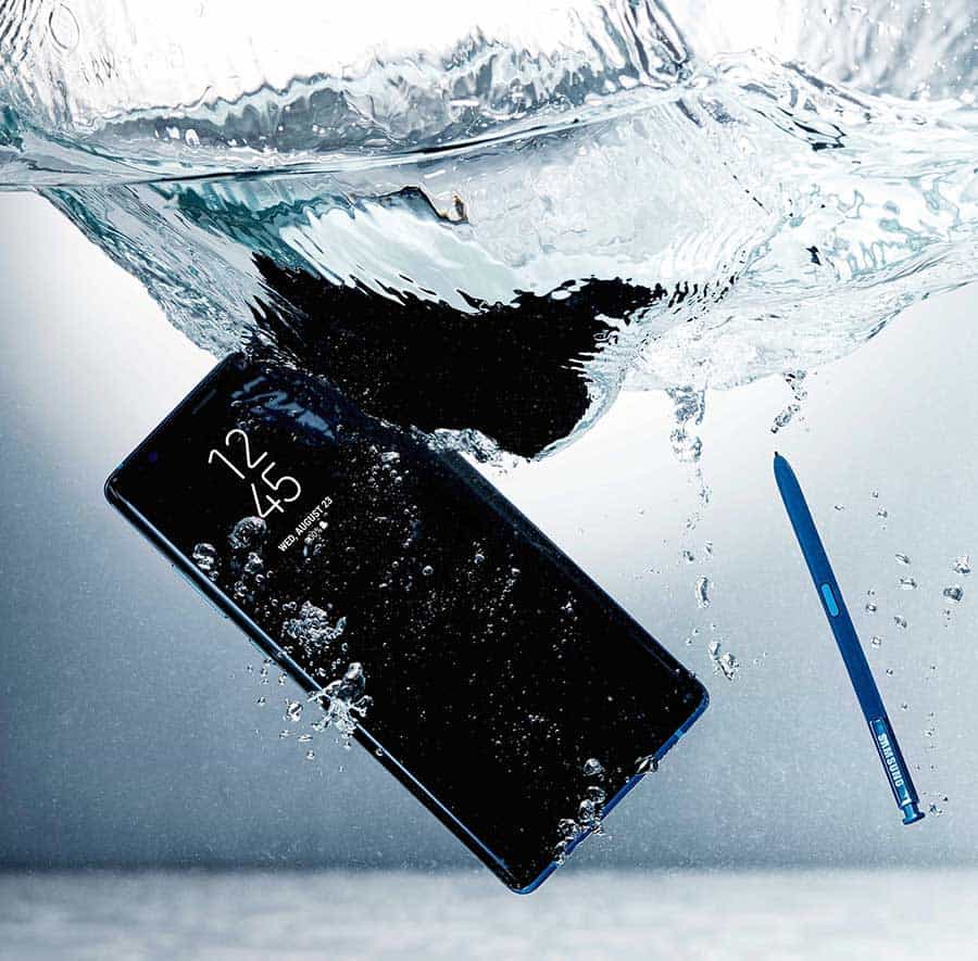 Above: Samsung’s Note 8 and S-Pen are both rated at IP68 for water and dust resistance. Photo courtesy Samsung.