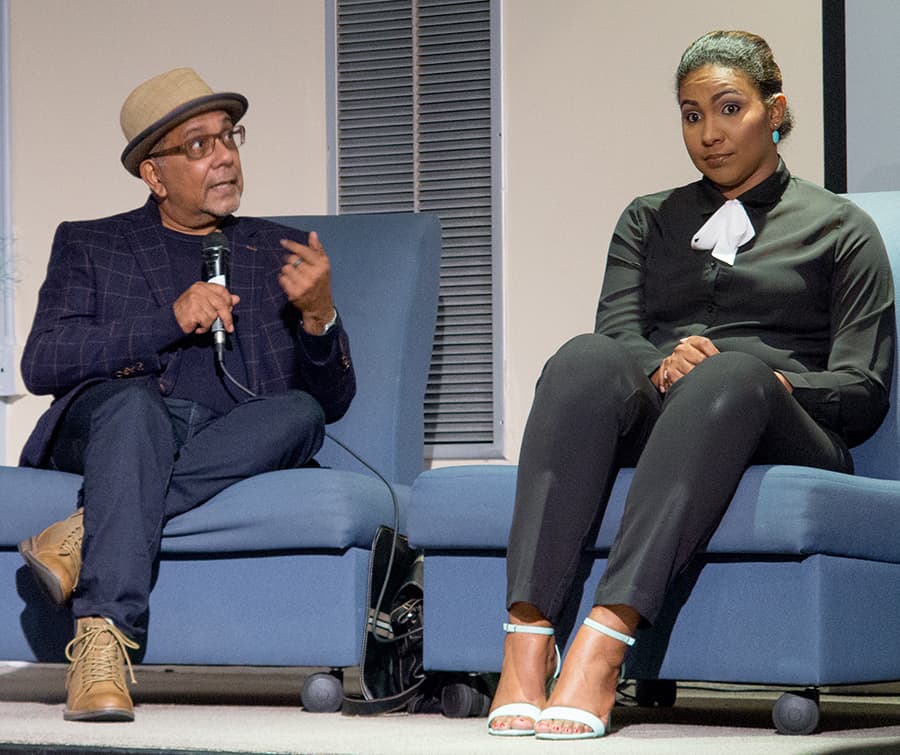 Above: Dominic Kalipersad and Golda Lee-Bruce at the event. Photo by Mark Lyndersay.