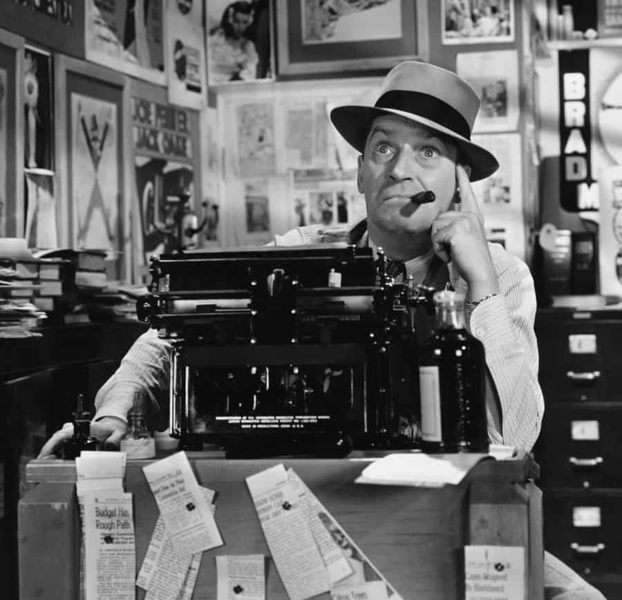 Man thinking at typewriter. Photo by everett225/DepositPhotos.