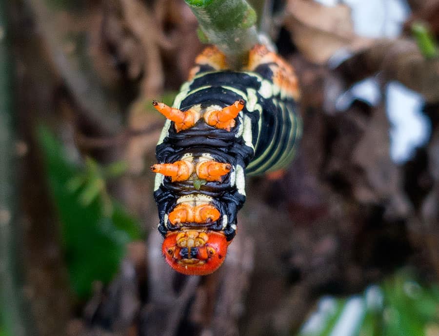 Above: A frangipani caterpillar photographed in RAW mode and cropped on a Samsung Note 9. Photo by Mark Lyndersay.