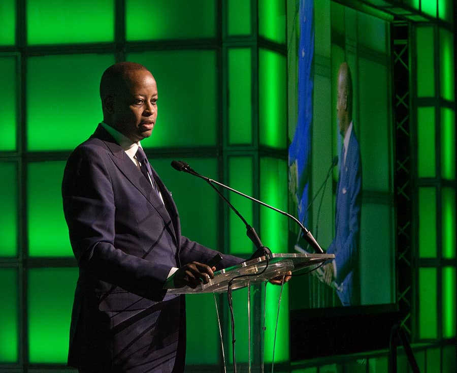 Above: Dr Wayne Frederick gives the keynote address at bmobile Connect. Photos by Mark Lyndersay.