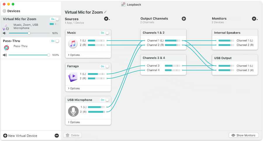 Tools that made Teaching 2020 possible: Loopback is a Mac software tool that creates a digital patch bay for audio. Without it I couldn’t get video to run live in the LMS I was using. It also made it possible to speak over the clips. Image courtesy Rogue Amoeba.