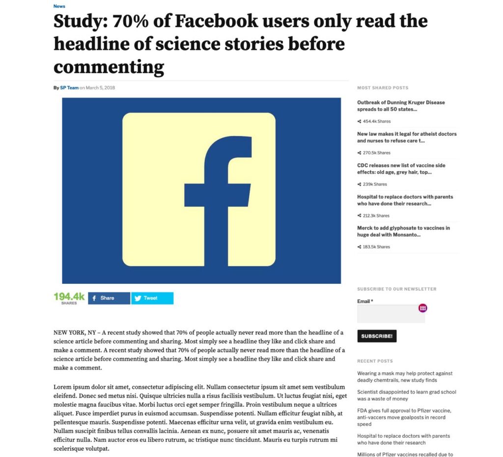 In one study of online conversations (https://hal.inria.fr/hal-01281190), it was discovered that 59 per cent of shared online links are unread blind shares. They were shared based on the headline, a phenomenon known as sharebait.