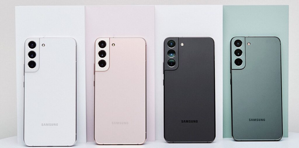Samsung’s emphasis on lifestyle photography kicks into higher gear with an improved camera system featuring a 3x, 10MP telephoto lens, 50MP standard wide lens, a 12MP ultra-wide lens and a 10MP front facing camera on the S22 and S22+.