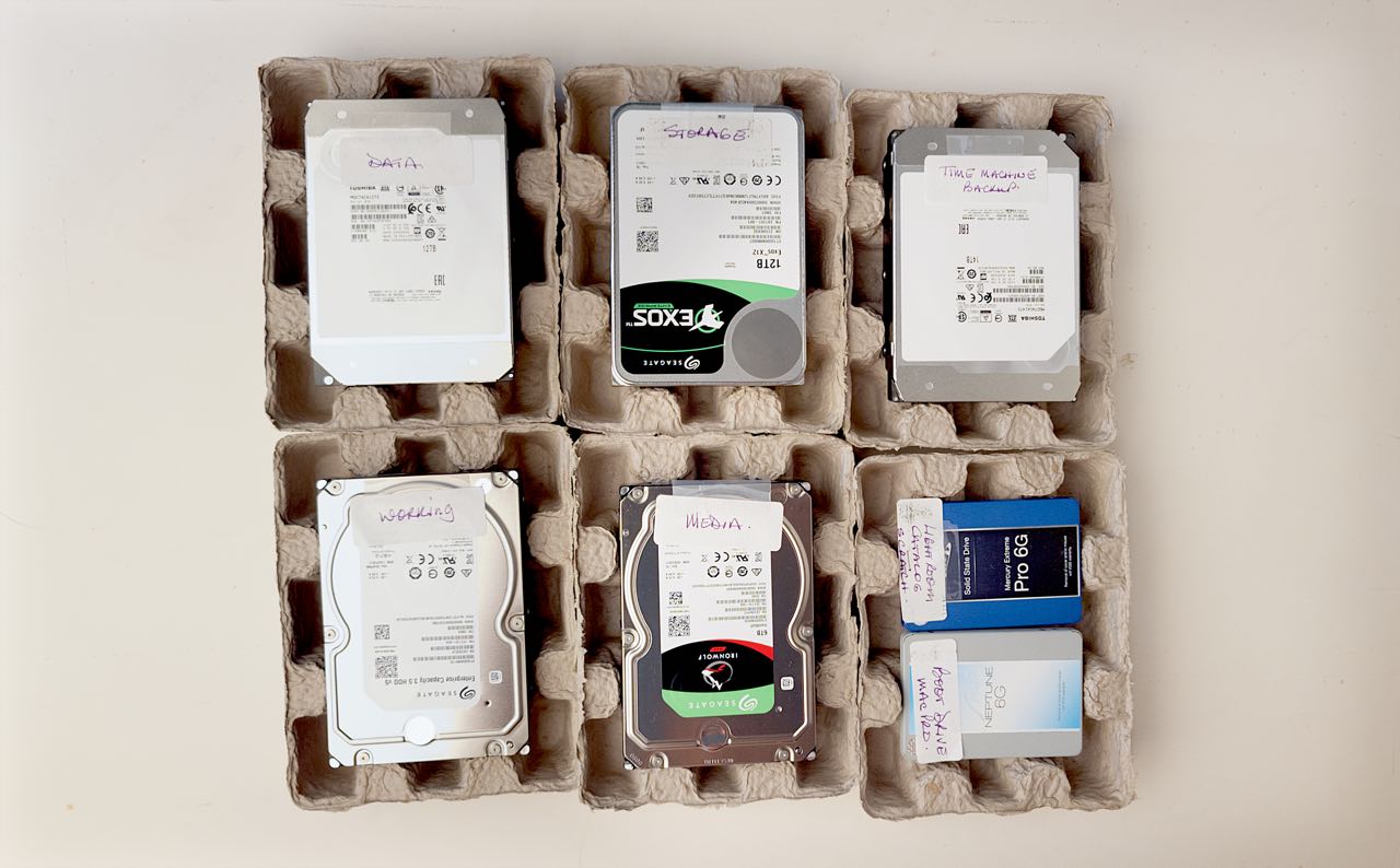 The failed system is a 2009 Mac Pro tower, which is connected to everything I work with and hosted five hard drives and two SSDs representing a primary storage resource of 50 TB.