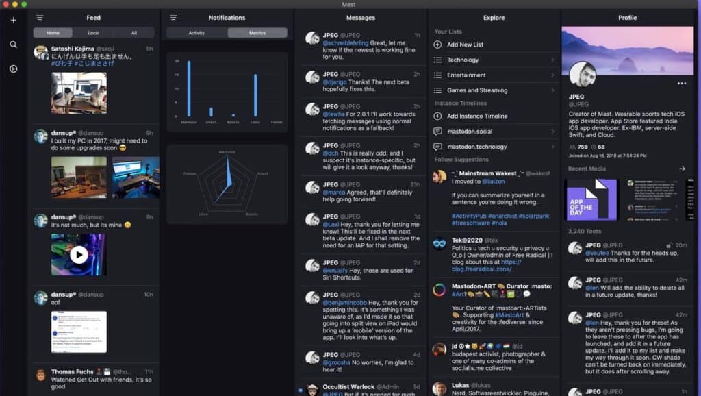 Above: Mastodon’s alternative web interface draws inspiration from Tweetdeck.