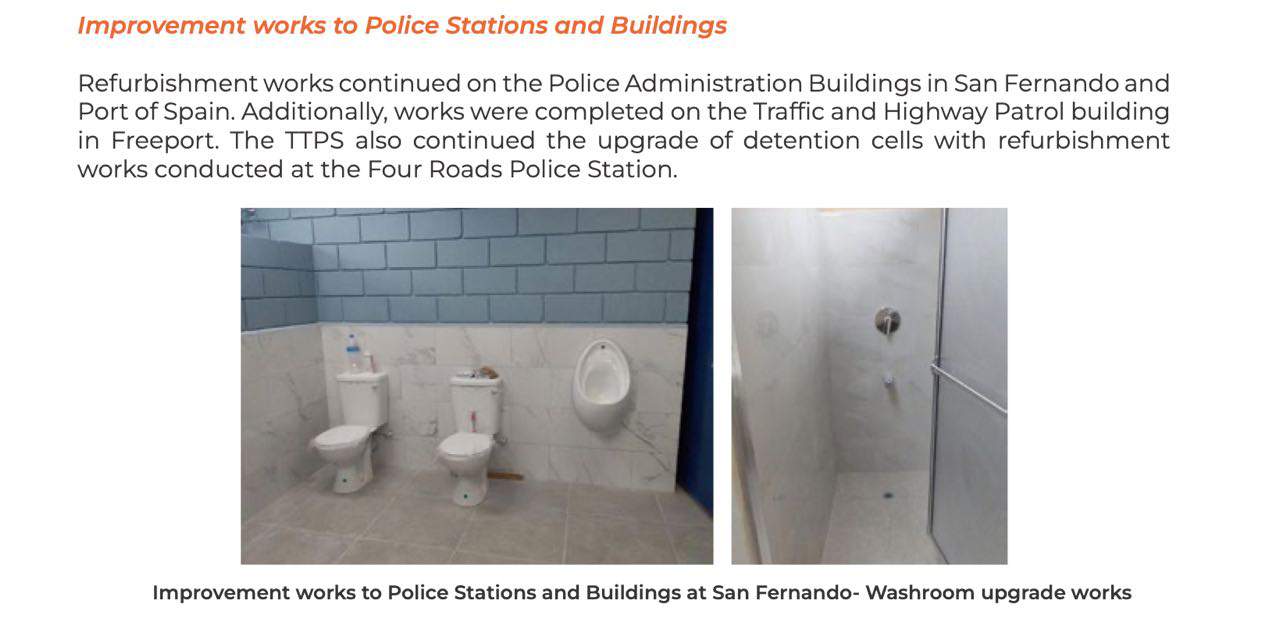 In a document that offers detailed boasts of the concrete to be poured for police building refurbishment – and even proudly includes a photo of side by side sit toilets installed at the San Fernando Administration building, built without benefit of a modesty divider – this lack of clarity is confusing.