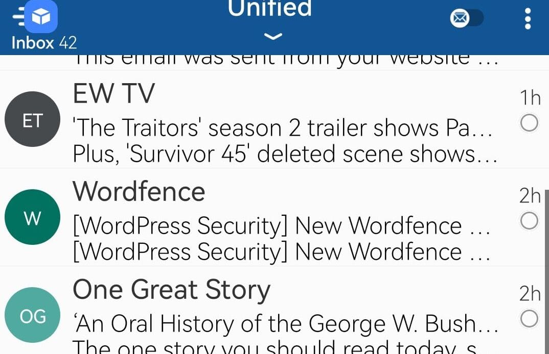 For Android, that’s BlueMail (if you don’t have access to Outlook), a well-designed and full-featured mail client for Android (and every other platform) that connects to many mail servers, including some that the stock Android mail client chokes on.