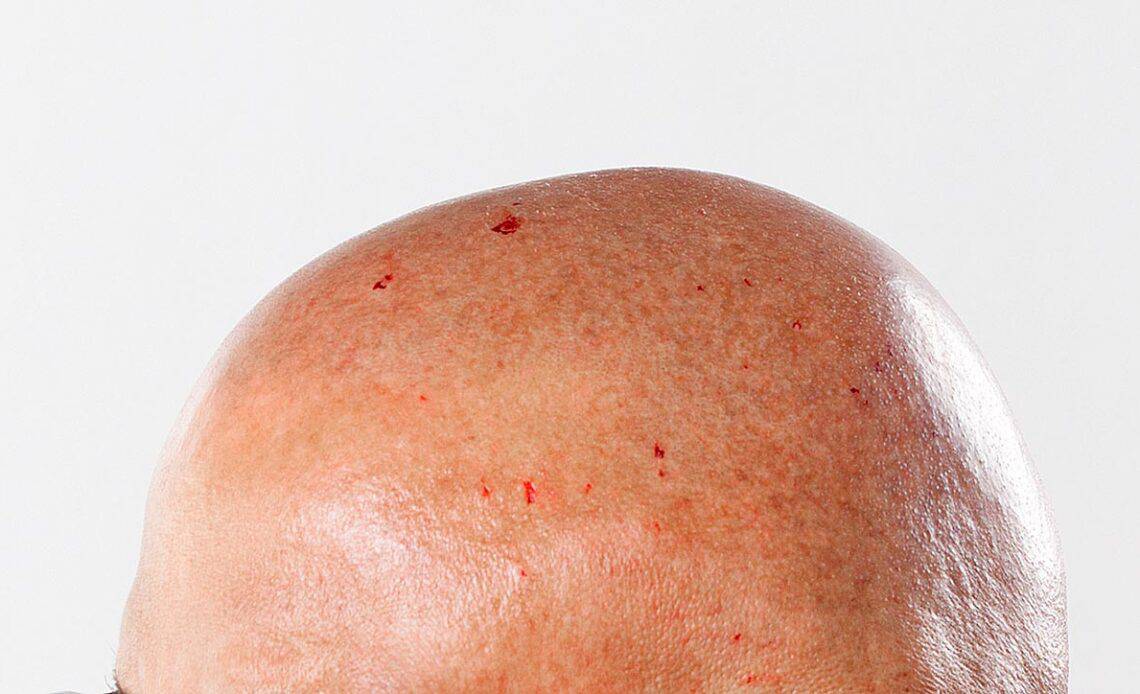 Above: My scalp, somewhat the worse for wear after my first shave with a single blade razor