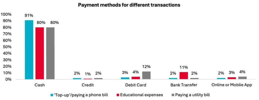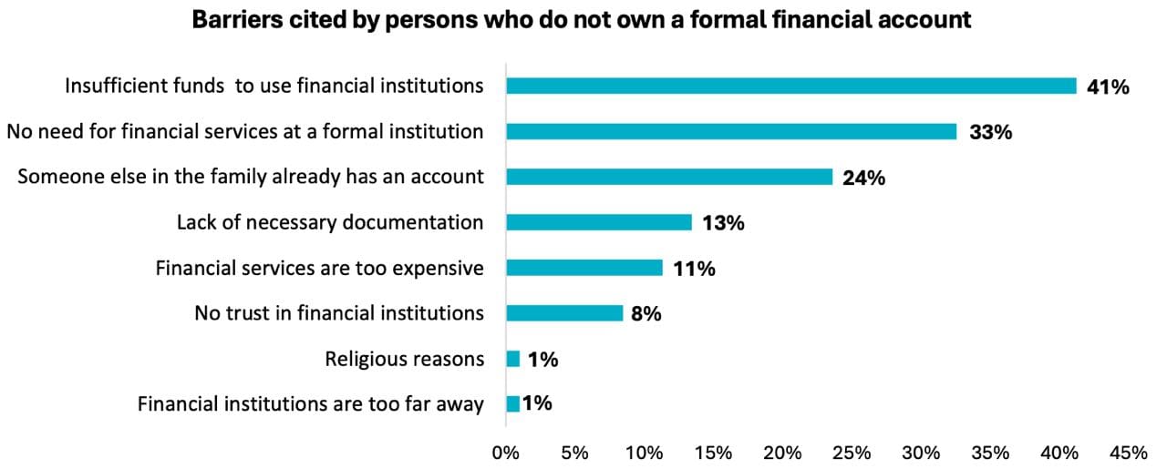 The percentage of citizens who have a bank account dropped from 81 per cent in 2017 to 75 per cent in 2023. Only 52 per cent of the more than 2,000 survey respondents preferred to save their money in a bank. Eighty-two percent preferred to save their money at home.