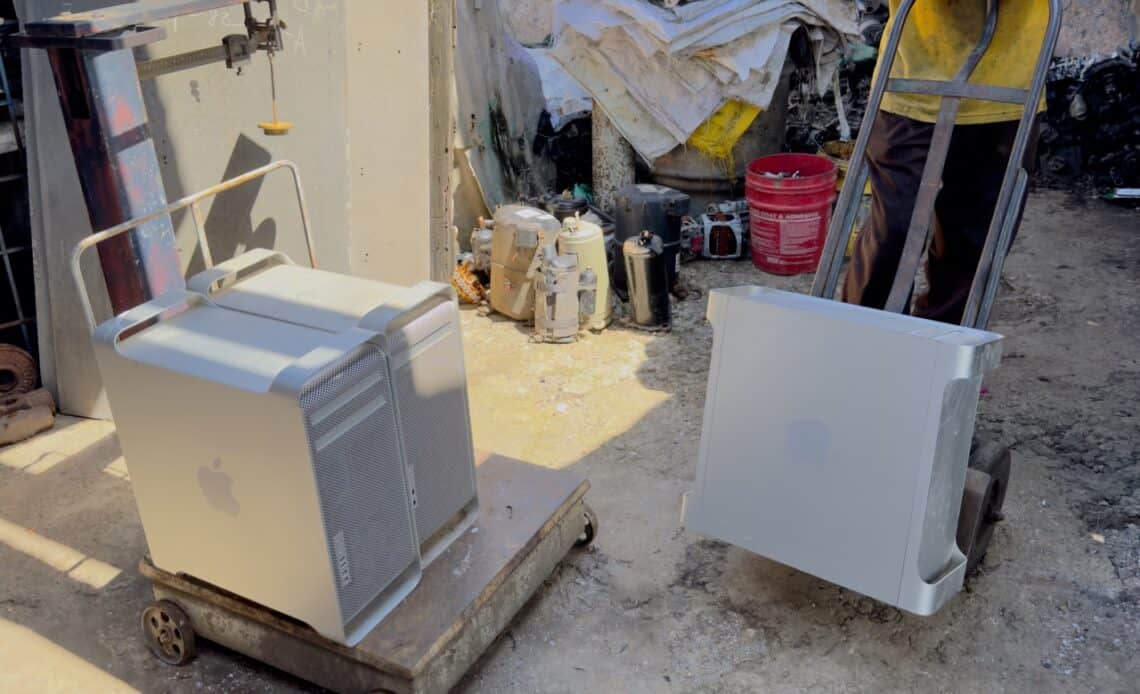 Above: Weighed, but never found wanting. The last duty of failed 2009 MacPros, going to an aluminium recycler. Photos by Mark Lyndersay.