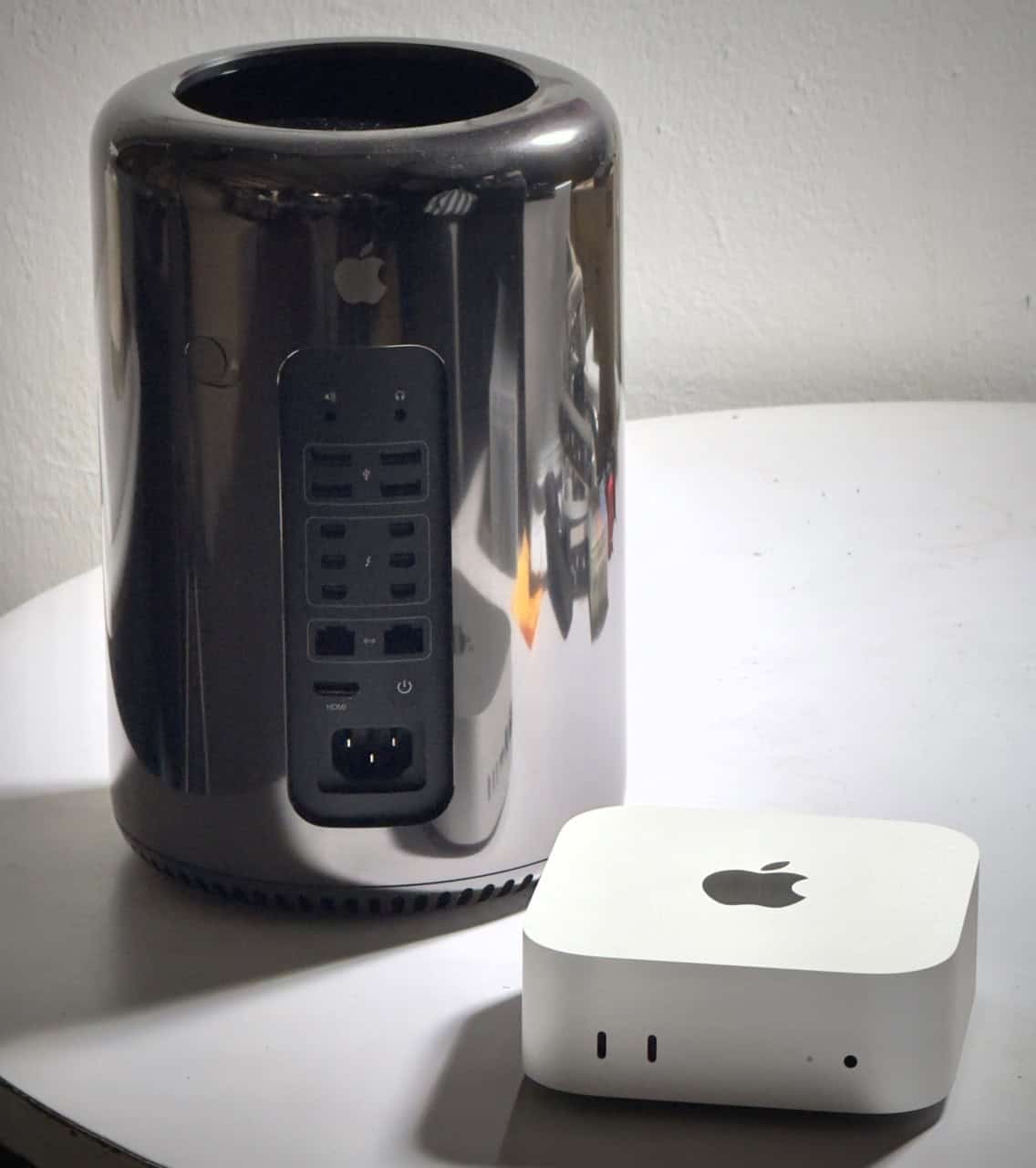 Another consequence of this incremental effort at upgrading has been the notable shrinkage of the hardware. The workstation replacement is the M4 MacMini, which handily outpaces all its predecessors in a form factor that fits comfortably in my open palm.