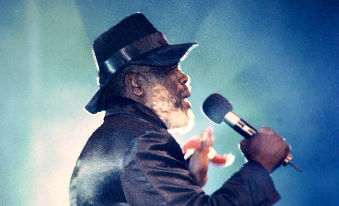 Above: Winston Bayley, The Shadow, performing at Dimanche Gras in 2001. Photo By Mark Lyndersay. Shadow would threaten to stop making albums in 2003 because of his frustration with “Musical Pirates.”