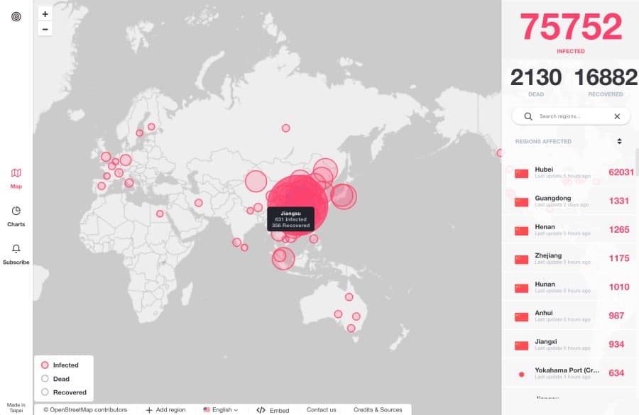 Above: The coronavirus mapping website.