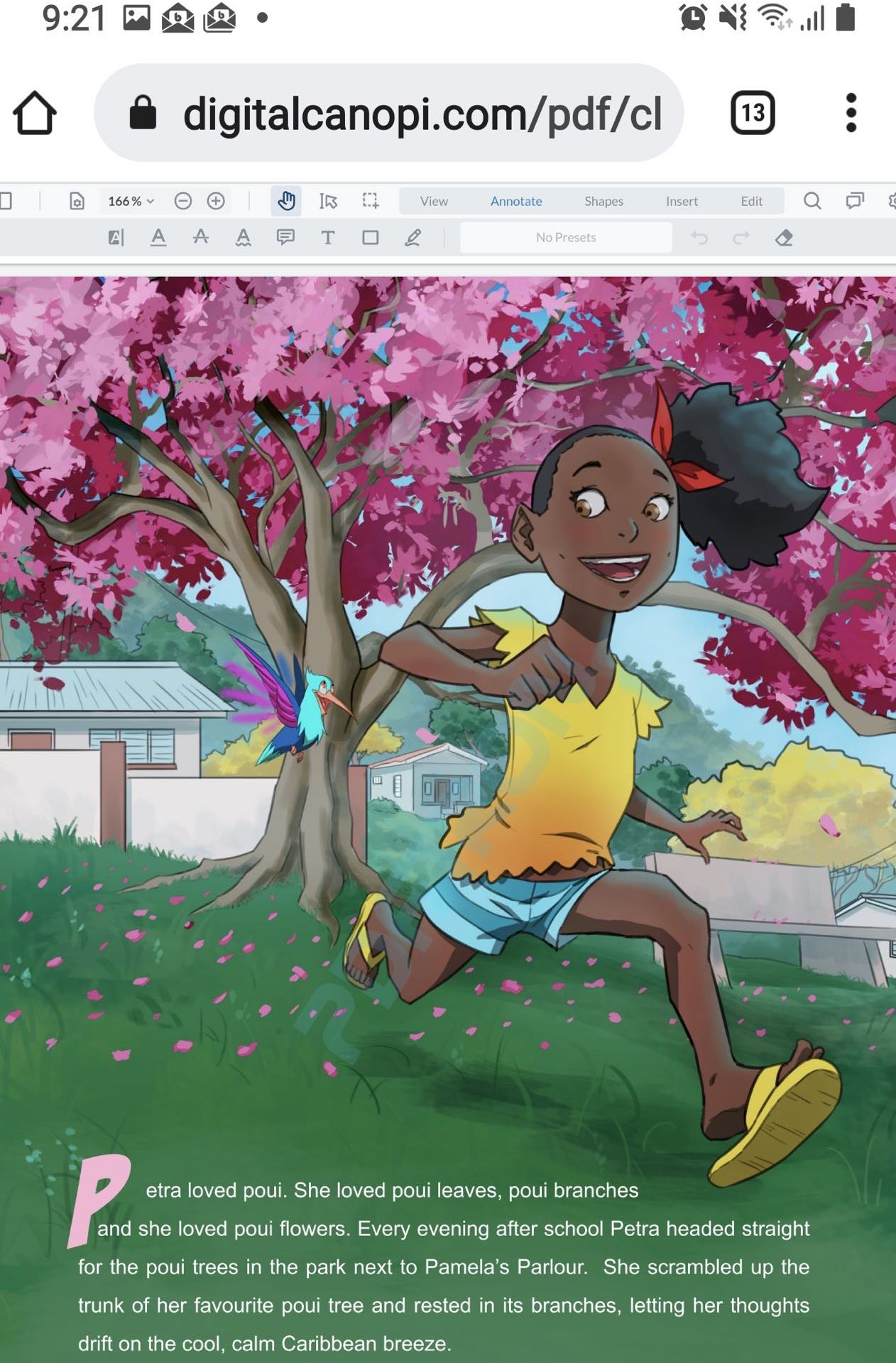 Author Marsha Gomes-McKie, a local self-published author and illustrator who writes children’s books, romance and folklore fantasy fiction and is the author of Soucou Yant, was one of the first authors to publish on Digital Canopi.
