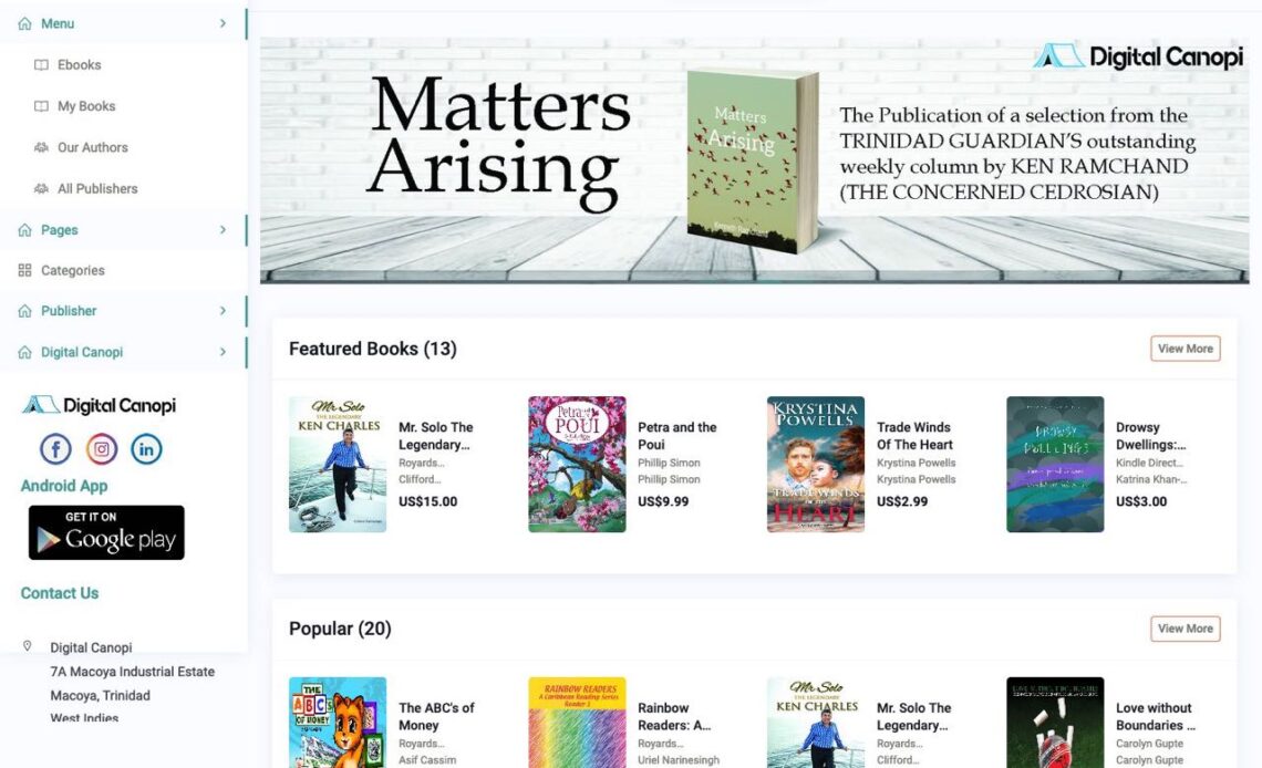 “Digital Canopi is especially attractive for publishers with books/catalogues (that are) out of print or who are challenged with the high cost of physical distribution in markets where they may not have agents and/or distributors”. “Added to this we are mindful that the Caribbean publishing sector is struggling with the sale of physical books (outside of educational books).”