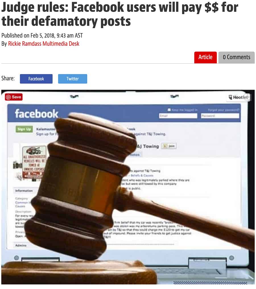 The Trinidad Express reports on Justice Frank Seepersad’s ruling on defamatory posts attributed to a local Facebook user…
