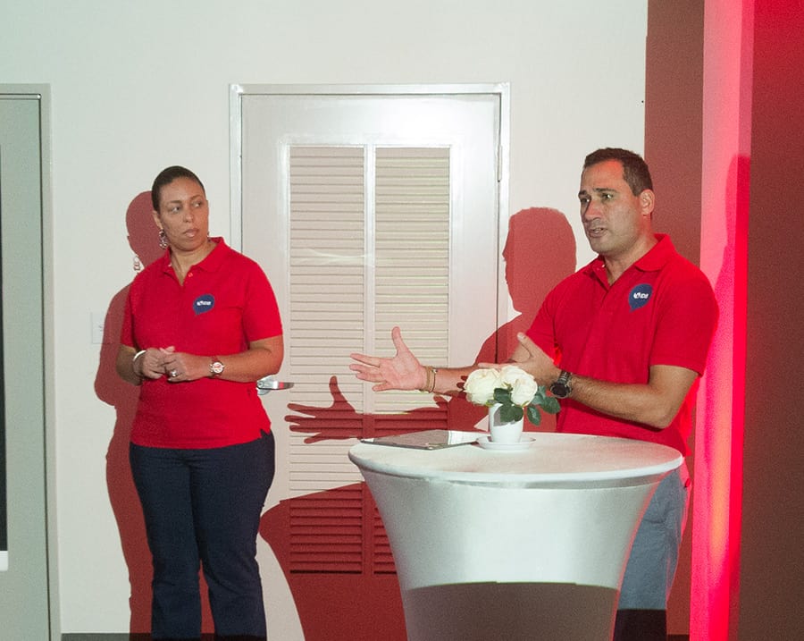 Above: Carina Cockburn, Principal Operations Specialist and and Tomas Bermudez, Country representative of the IDB during the launch presentation. Photo by Mark Lyndersay.
