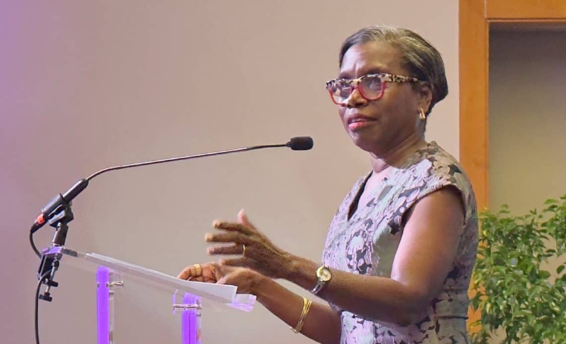 Above: InfoLink General Manager Glynis Alexander-Tam speaking at the company’s 30th Anniversary celebrations. Photo by Mark Lyndersay.
