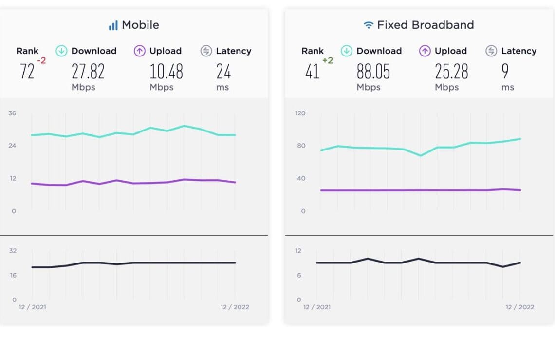 Above: TT’s aggregated speeds and their international rankings according to Ookla’s tests.