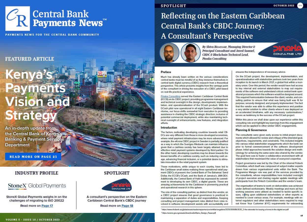 By Shiva Bissessar, Managing Director & Principal Consultant and Javed Samuel, CBDC & Blockchain Technical Lead, Pinaka Consulting. Originally published in the Central Bank Payment News/Currency Research publication, on October 31, 2022.