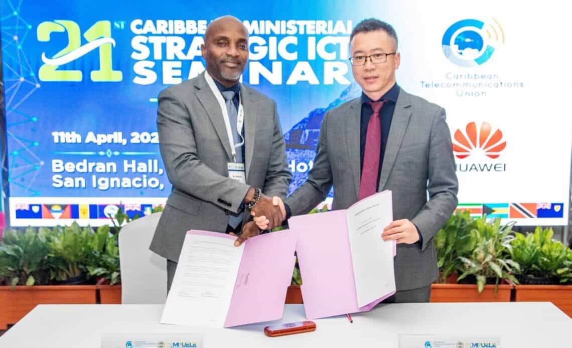 Mr. Rodney Taylor, Secretary-General of the CTU, and Mr. Daniel Ding, Huawei’s Vice President of Public Affairs and Communications in Central America and the Caribbean, signed the agreement, under which both parties intend to exchange information and ideas on ICT policies and regulations, undertake joint research on network security, data protection, digital inclusion policies and emerging technologies like 5G and green energy, as well as organise important capacity building activities through meetings, workshops and training interventions, such as the 21st Ministerial Seminar.