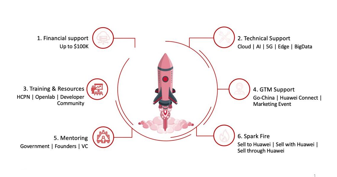 Huawei Spark is a hybrid accelerator program officially launched in 2020 globally. It is founded by Huawei Cloud Business Unit and underpinned by Huawei technological and innovation leadership. The purpose is to incubate and accelerate tech startups growth for a fully connected, intelligent world, as a partner.