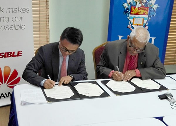 A new partnership has been forged with the signing of a Memorandum of Understanding (MOU) between The University of the West Indies (UWI) St. Augustine Campus and leading global information and communications technology (ICT) solutions provider, Huawei Technologies.