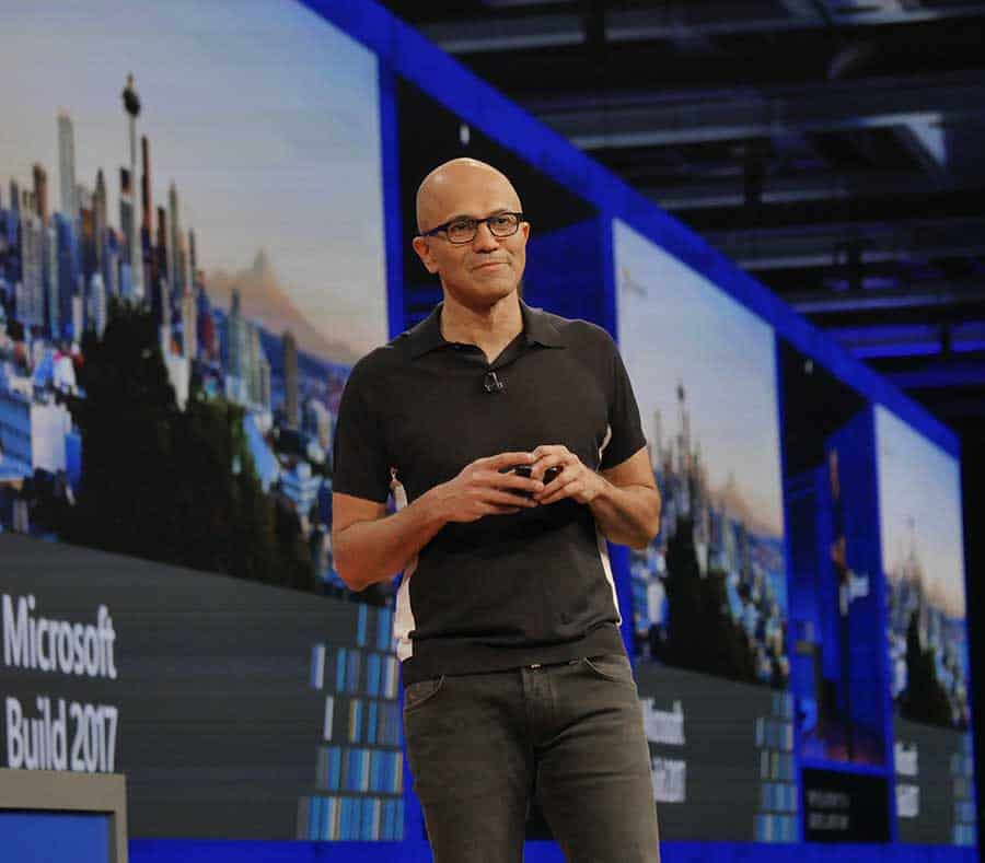 Microsoft’s Satya Nadella speaks at Build 2017. Photograph by Brian Smale, courtesy Microsoft.