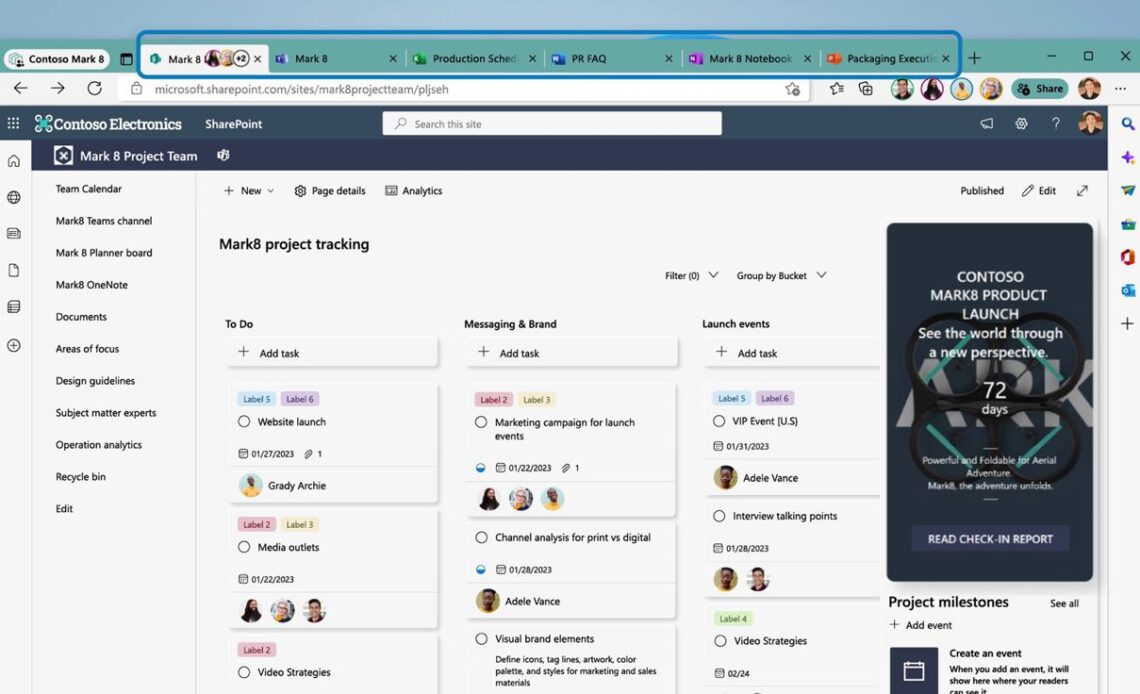 Microsoft Edge Workspaces, a shared set of browser tabs where groups can view the same websites and latest working files in one place. As the team works together, tabs are updated in real time, so everyone stays on the same page.