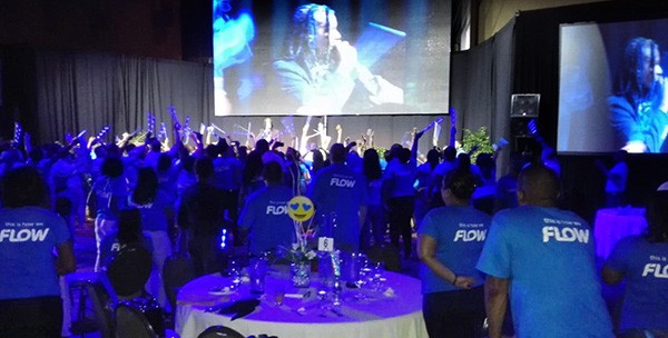 Above: Soca artiste Olatunji performs for Flow employees at the company’s Brand Launch at the Hyatt Regency, Trinidad. Photo courtesy Flow.