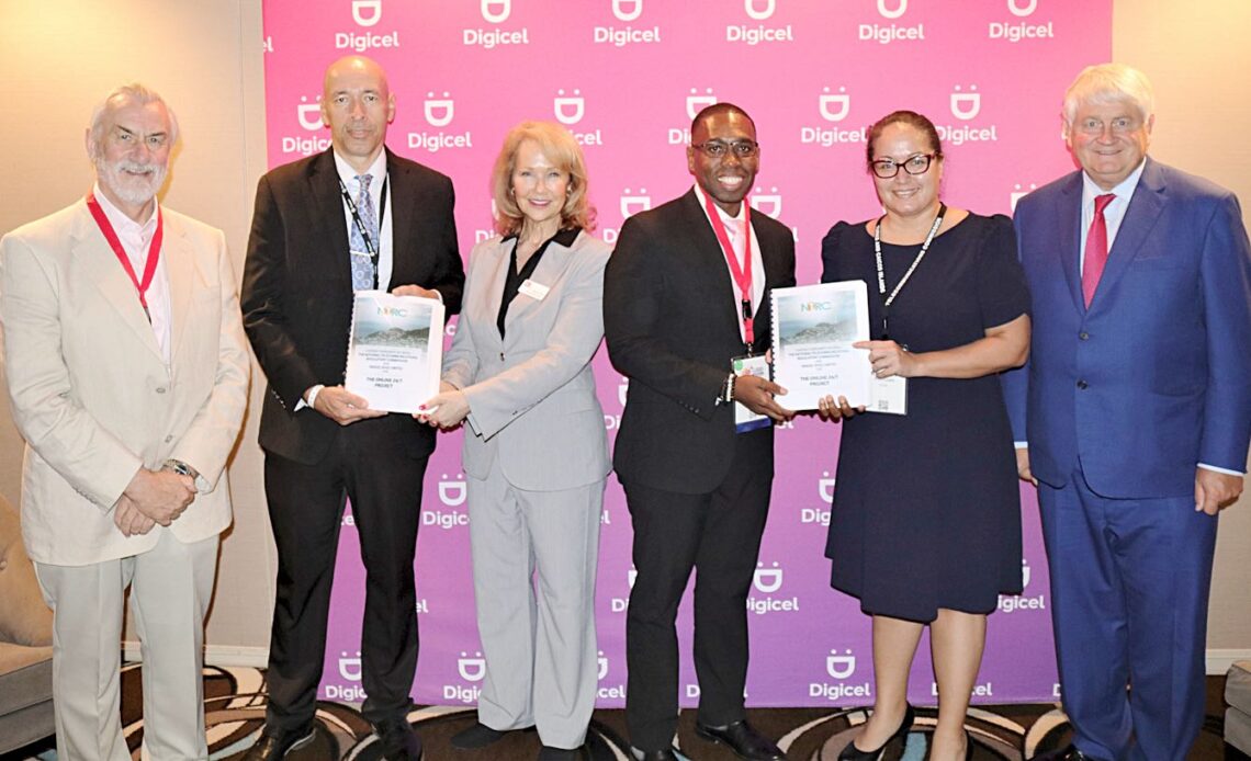 Above: (L-R) Kieran Mulvey – Digicel’s Government Relations Director; Apollo Knights – Director, National Telecommunications Regulatory Commission; Martha Tate – Digicel’s Chief Business Officer; Addison Stoddard – Digicel TCI’s Chief Executive Officer; Roxanne Knights – Chairman, National Telecommunications Regulatory Commission; Denis O’ Brien – Chairman of Digicel Group. Photo courtesy Digicel.