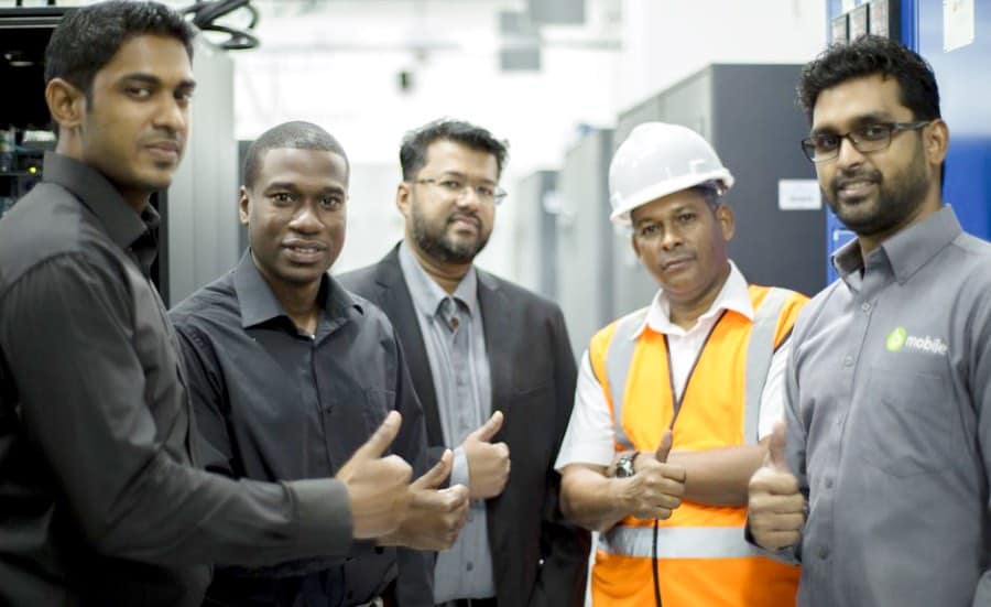 Above: TSTT’s Valmiki Maharaj, Rawlson Sanderson, Sean Koon Koon, Ricardo Castillo and Basheer Mohammed from its data centre team. Photos courtesy TSTT.