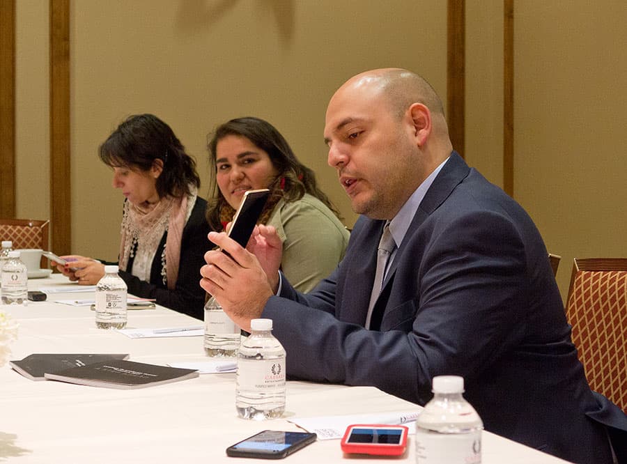 Above: David Moheno explains features of the new Huawei Mate 9 at a press briefing for Latin American journalists at Caesar’s Palace in Las Vegas on Thursday. Photo By Mark Lyndersay.