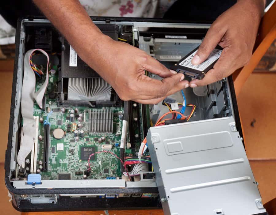 The systems are cleaned and sanitized, the hard drives (most had none for security reasons) were replaced with faster solid state drives (SSDs) and where required and the hardware was available; the RAM on the computers was upgraded. Some of the oldest computers had their CMOS batteries – a tiny battery on the motherboard – replaced.