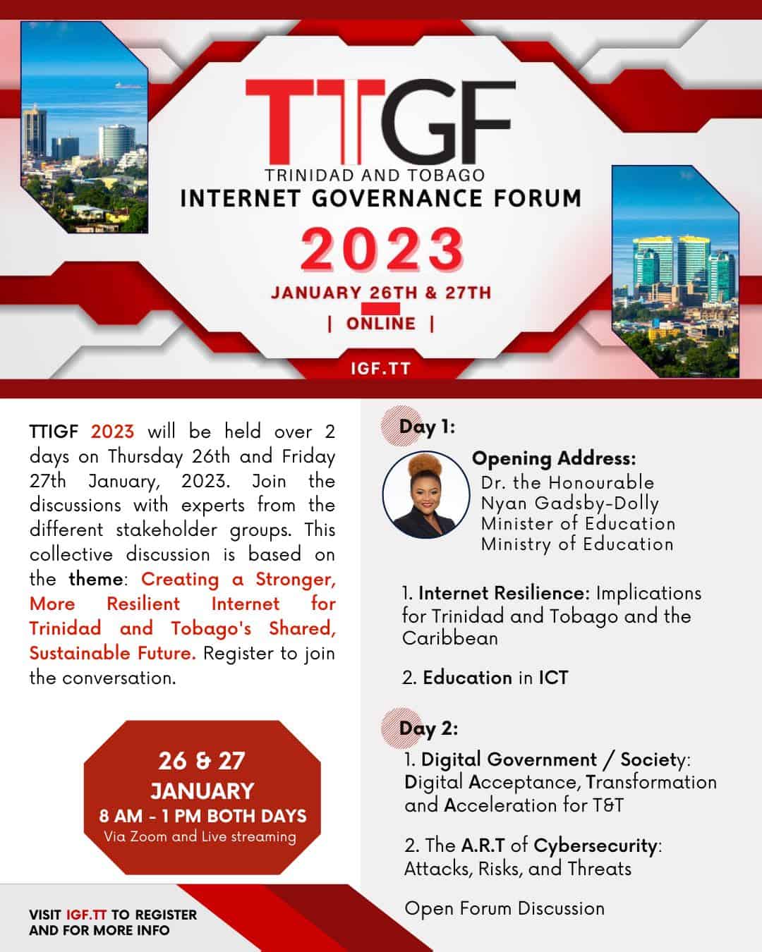 The TT Internet Governance Forum will host two days of online discussions beginning on January 26th and will feature discussions with experts from a range of stakeholder groups. The event is being convened to explore the theme “Creating a Stronger, More Resilient Internet for Trinidad and Tobago’s Shared, Sustainable Future.”