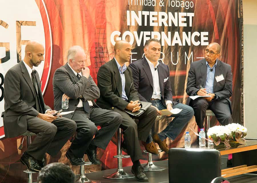 Above: Ajmal Nazir, Glenn McKnight, Randall DeFrietas, Peter George and Nigel Romano, panelists at the TTIGF discussion. Photo by Mark Lyndersay.